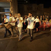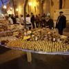 The Pilgrim Gaiata & The Edible Tongue of Castellón In 2006 Alicia Ríos and Antoni Miralda were invited by EACC (Espai d'Art Contemporani de Castelló) to give a series of workshops that examined the local fiestas of the Magdalena held every March. They both have considerable experience creating community performances which draw on local referents, symbolism and myth within a wider understanding of the universal elements of public ritual celebration such as music, dance, food, costume, procession, offering, sacrifice and catharsis. In the case of the fiestas of the Magdalena the principal icon is the gaiata, an elaborate temporary festival structure that integrates references to all the fiesta's other symbolic elements. Called Monument de llum i color sense fum ni foc (monument of light and colour without fire or smoke), they are three-dimensional geometric forms incorporating countless lights of different colours that illuminate them from within and without. During the fiestas, the gaiatas are paraded through the city at night recalling the city's foundational story of the voyage of its original inhabitants from the hills to the plains as well as themes of pilgrimage and religious illumination. The three workshops were dedicated to the concepts of monument, light and gastronomy. These categories formed the basis by which to consider all the different elements of the fiestas, analyse their symbolism and discuss ways in which they could be reconfigured and re-presented to the public in an innovative, contemporary gaiata, renewing the connection between the city and its traditions. In March 2007, under Alicia and Miralda's direction, the workshop attendants participated in the fiestas through their creation of The Pilgrim Gaiata and The Edible Tongue of Castellón. The Pilgrim Gaiata was a structure of three panels of 8, 4 and 2 metres in height, decorated with the abstracted outlines of a traditional gaiata profile. Lit from within, they changed colour while also displaying a series of projected images that reflected the symbolism of the fiestas. The Edible Tongue of Castellón consisted of 14 tables that fit together to make a tongue of 30 square metres, laden with ingredients and dishes that reflected the development of the local cuisine since prehistoric times, progressing from the oldest traditions at the back to the latest innovations at the tip. It was inspired by Miralda's Sabores y Lenguas (Flavours and Tongues) series in which he maps the gastronomic culture of cities all over the world onto the image of a tongue. For the event, a spectacular long white limousine was paraded through the city, lead by the traditional xiquetes del meneo and followed by musicians, to the EACC, where the Pilgrim Gaiata had been installed. Then, the Edible Tongue was wheeled out and assembled before the crowds and hundreds of people proceeded to devour the culinary heritage of the city, mapped out on its taste buds. Afterwards, the Pilgrim Gaiata travelled to Valencia to be installed in the esplanade of MUVIM (Museu Valencià de la Il-lustració i de la Modernitat) and later in the Castellón neighbourhoods of Donoso Cortés and Grupo Reyes before returning to EACC. In addition, the workshop participants produced a commemorative newspaper/manifesto for the occasion called The Gaiata Peregrina in order to present all the research and thought that went into the project. The Pilgrim Gaiata and the Edible Tongue of Castellón were created under the direction of Antoni Miralda and Alicia Ríos by: Rafa Belda, Lourdes Chesa, Emilio Ibáñez, Ilaria Maura, Natalia Muñoz, Ana D. Prades, Gema del Rey Jordá y Mónica del Rey Jordá Press A bocados con la 'gaiata' del Espai d’Art(download pdf) Nuria Balaguer, Las Provincias, 15/3/2007