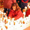 'La Feria' was an installation staged twice, in London and Madrid, in which to explore the five senses. The audience became performers, their sensory organs the instruments that had to be tuned in order to produce a symphony of sensations. A world of experience was presented where you could touch, walk on, eat and truly interact with a series of objects, props, foods and scents that instead of being taken past you could actually take with you! The only guide was one's will to experience and one's curiosity, leading to a lack of inhibition. Improvisation took place, opening windows and doors of perception and sensation closed in everyday life. A transition between individual experience and a communal concert of sensations was possible thanks to a stream of evocations and symbols, tastes, smells, textures... from past times and far off places, which made the participants' unconscious release the pleasure of recalling sentiments and emotions long ago forgotten. In the version for Teatralia she also presented 'The Authentic Food from Fairytales' including Snow White's apple and Popeye's tinned spinach. In both London and Madrid school visits were organised including groups of disabled children. For Alicia it was very rewarding to see how these children in particular responded to some of the stimulus on offer, unable to appreciate some aspects they often found others particularly intense. 1st version LIFT 97 (London International Festival of Theatre), at the BAC (Battersea Arts Centre) 2nd version Teatralia, International Festival of Theatre for Children, Madrid and Alcalá de Henares, 2002. Extra: Breakdown of the installation areas Press 'Meet Alicia Rios. She's the Spanish gastronomy expert who's turned to theatre to convince us of the creative power of food. As an authority on the subject, she's laughing and educating at the same time. "I like to approach things from an ironic and poetic point of view," she says, balancing a hat she has just fashioned from mange tout, sweet corn and cress on her head with surprising dignity. Alicia is the most sophisticated fruit-and-nut case I've ever met, and if she doesn't cause a bit of a stir with her first public performances in London, I'll eat her hat.' -Caroline Stacey, Time Out, 4.6.97 'La Feria combines the sociability of a Mediterranean marketplace with the abandon of toddlers' playground. Adults become ludicrously childlike, dipping their toes in sand and jumping on bubble-wrap. Children become like mini-adults, touching and tasting as if they were wine buffs or food experts.' -Lyn Gardner, The Guardian, 7.6.97 'Alicia Ríos is an extraordinary cocktail: sculptor, set designer, gastronomic philosopher, gourmet and diplomatic ambassador for the crafts and food of Spain. She positively encourages visitors to explore everything with every one of their five senses. In this show, the "Do not" in "Do not touch" is replaced by an emphatic "Do!"' -Sophie Grigson, The Evening Standard, 5.6.97 'Ms. Ríos has made abstract ideas tangible, audible, smellable and tasteable philosophy made so concrete that she no longer needs to speak, act or even be present to communicate her arguments. Her performance has become so abstract that the installation worked all by itself.' -Paul Levy, The Wall Street Journal, Europe, 20.6.97 |